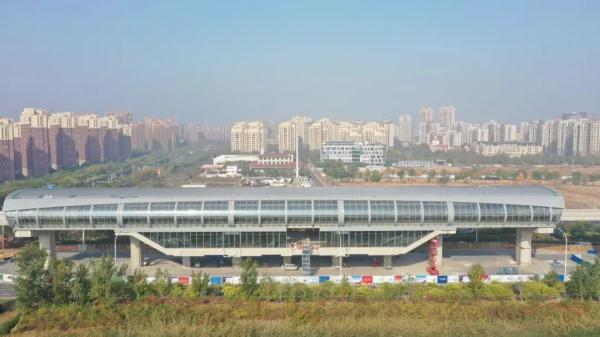 2023年11月中旬,滨海南开中学站、和顺路站、中新生态城站作为最早进场施工的高架站,外幕墙施工均已完成,独特的建筑风格“真容尽显”。