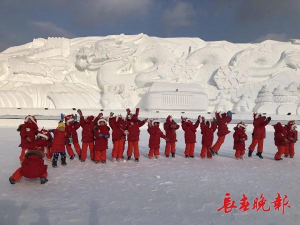 晶莹剔透、五颜六色的冰花……孩子们围着雪雕左看右看,上摸下摸,小眼神里满是好奇和惊喜,好像要把这些精美的艺术品都搬回家去。
