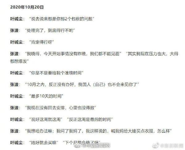 此前,媒体从相关渠道获得了张波、叶诚尘2020年6月3日至11月2日间与案件相关的微信聊天记录,这些聊天记录详细记录下张波、叶诚尘共谋作案的过程,以及张波的心理变化轨迹。