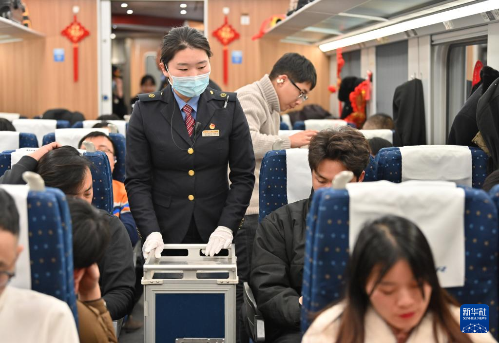 当日是周末,又逢南方小年。在北京丰台开往福州的D59次列车上,南来北往的旅客在这趟跨越约2000公里的列车上度过南方小年。车厢内人头攒动、座无虚席,尽管归途漫漫、舟车劳顿,但南腔北调之间依然充满回家的喜悦和期待。