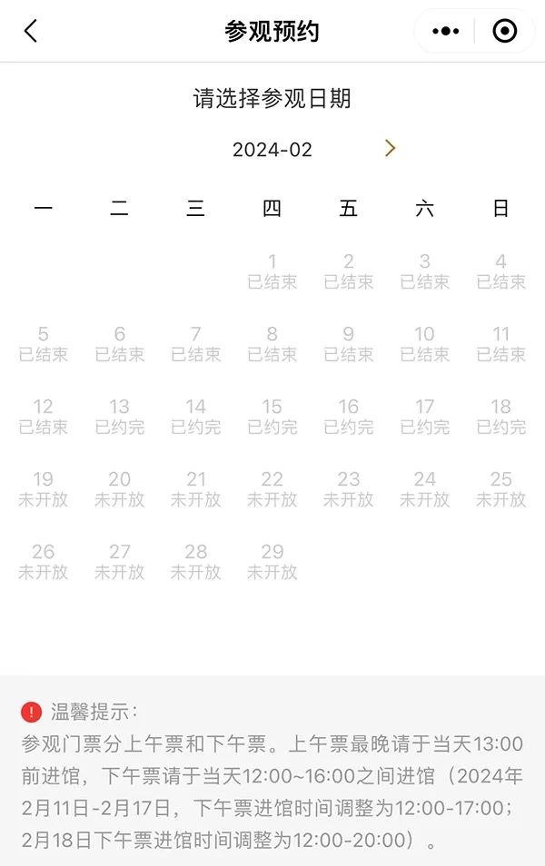 洛阳白马寺2月12日、2月13日、2月14日线上门票预约已满;洛阳博物馆2月12日、2月13日、2月14日门票预约已满;洛阳古墓博物馆2月12日、2月13日、2月14日、2月15日门票预约均已满。