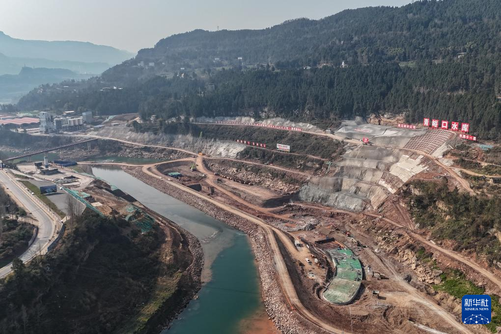 这是2月13日在四川省通江县拍摄的建设中的青峪口水库。
