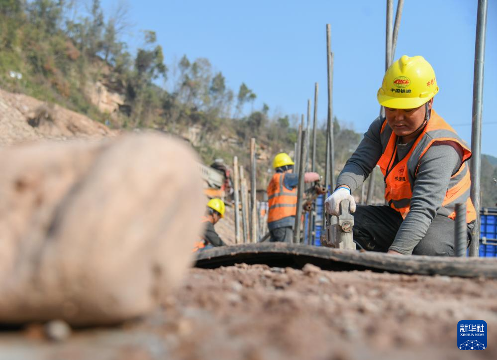 春节期间,位于四川省通江县的国家150项重大水利工程之一的青峪口水库在枯水期抢抓工期,劳动者加紧建设,确保工程进度。