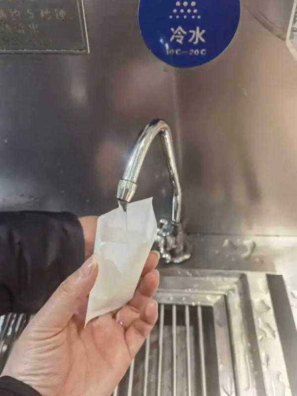 在众多货架中,甚至出现了免费直饮水机。顾客可自取“纸袋杯”,放冷水或温水饮用……