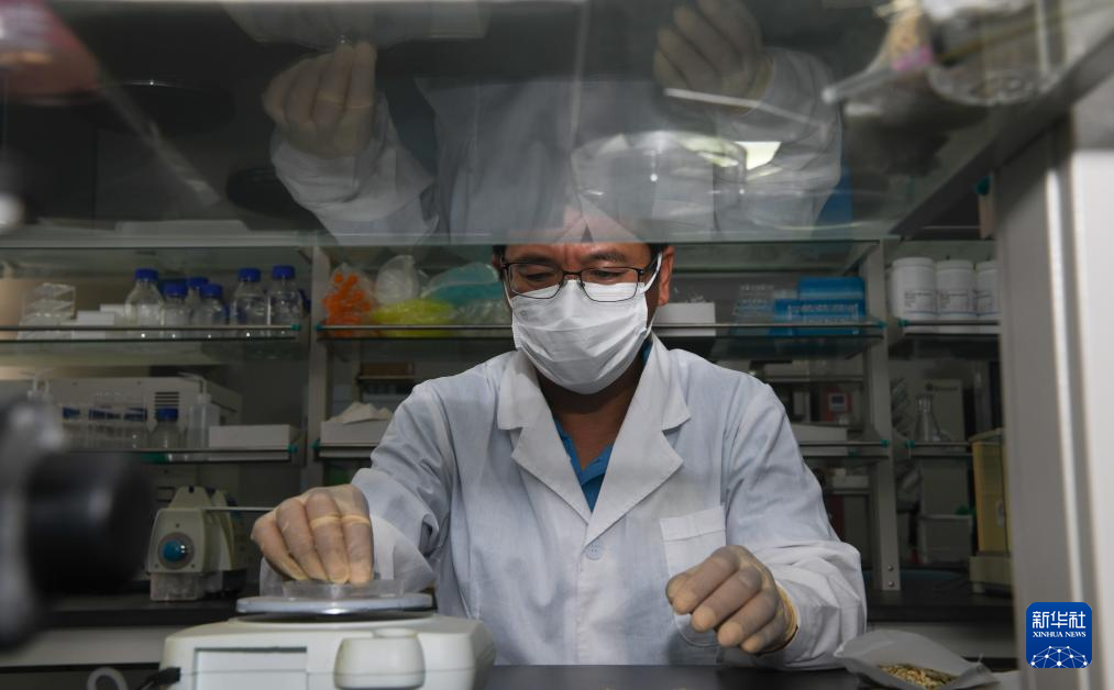 3月8日,在海南陵水广陵南繁科研育种国家级专家服务基地,中国科学院植物研究所海南分子育种基地高级工程师、博士刘华招在实验室工作。