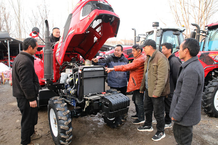 2024年2月27日,河南省开封市尉氏县邢庄乡的农民在尉氏农机市场上选购农机。新华社发(李新义 摄)
