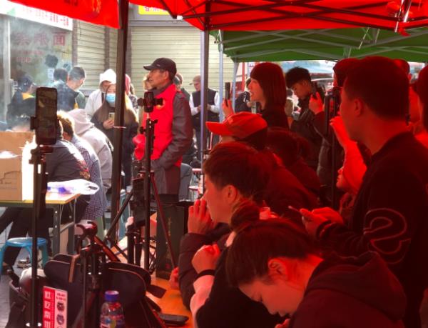 11时左右,海英麻辣烫正式营业,店门口被用几张桌子围出一块空地。空地里,“表情包大叔”负责烫菜,另一个男店员负责刷辣椒。空地外,无数“长枪短炮”和手机对准正在烫菜的大叔,现场的解说声堪比早读。志愿者介绍,这些都是自发来的网红。