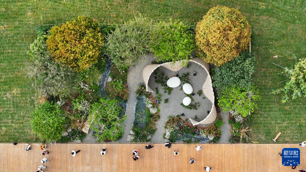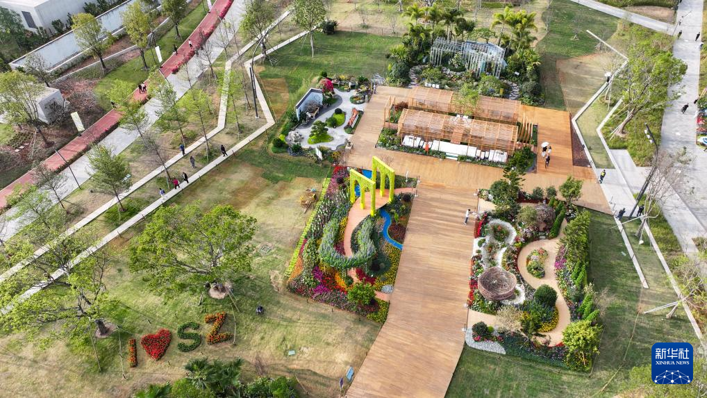 观众在深圳笔架山体育公园观赏参展的花园作品(无人机照片,3月22日摄)。