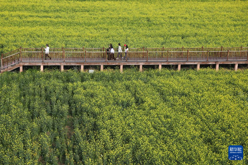 4月8日,游客在江苏省兴化市千垛菜花景区游玩(无人机照片)。