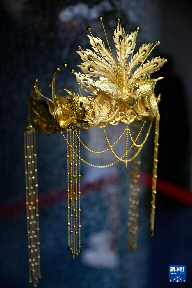 这是在消博会现场拍摄的一款纯金打造的“凤冠”(4月13日摄)。