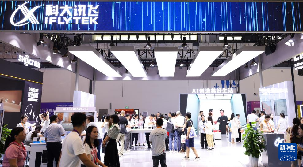 这是4月14日拍摄的消博会上的科大讯飞展台。