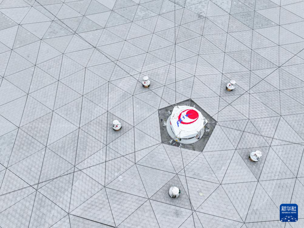 2月28日拍摄的“中国天眼”馈源舱(无人机照片,维护保养期间拍摄)。
