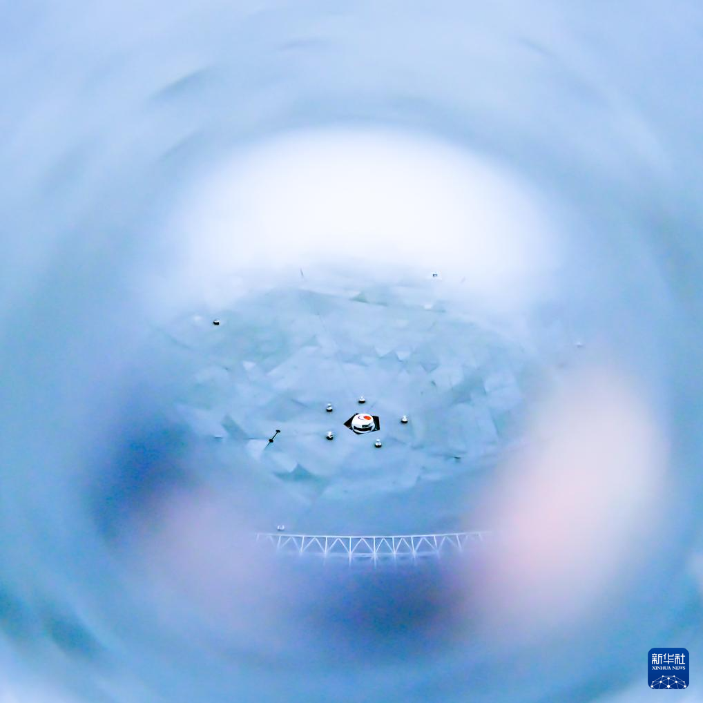 2月26日拍摄的“中国天眼”馈源舱(维护保养期间使用物理滤镜拍摄)。