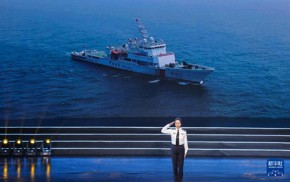 这是中华人民共和国浦东海事局海区海巡执法大队副大队长、“海巡01”轮船长詹春珮在进行宣讲(4月29日摄)。新华社记者 殷刚摄