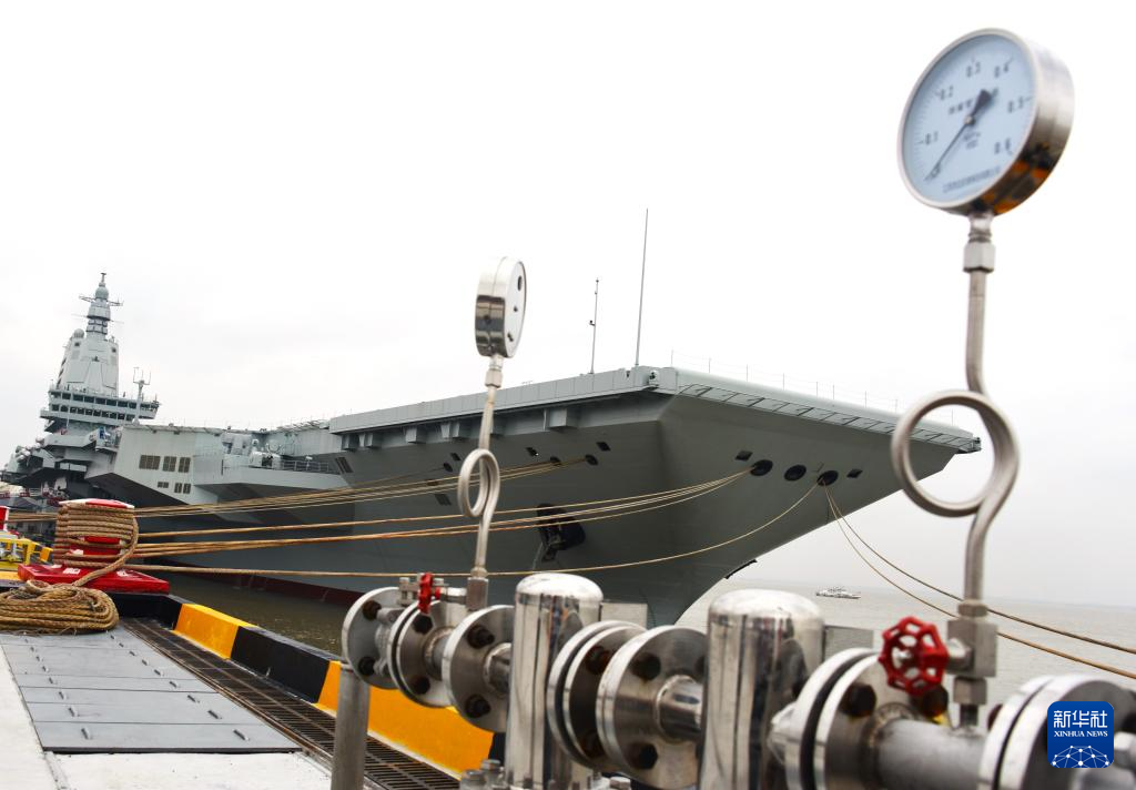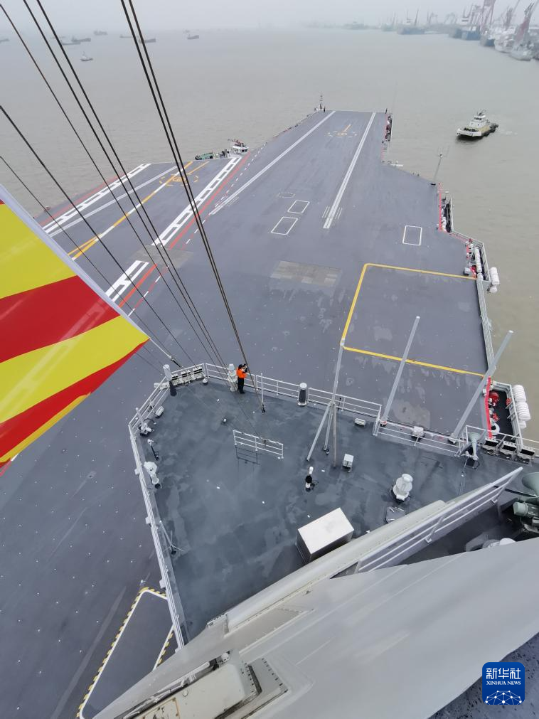 5月1日8时许,我国第三艘航空母舰福建舰从上海江南造船厂码头解缆启航,赴相关海域开展首次航行试验。这是即将从上海江南造船厂码头解缆启航的福建舰。