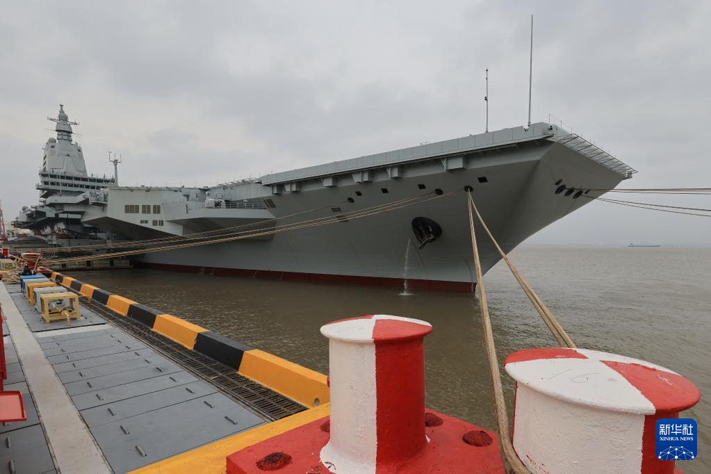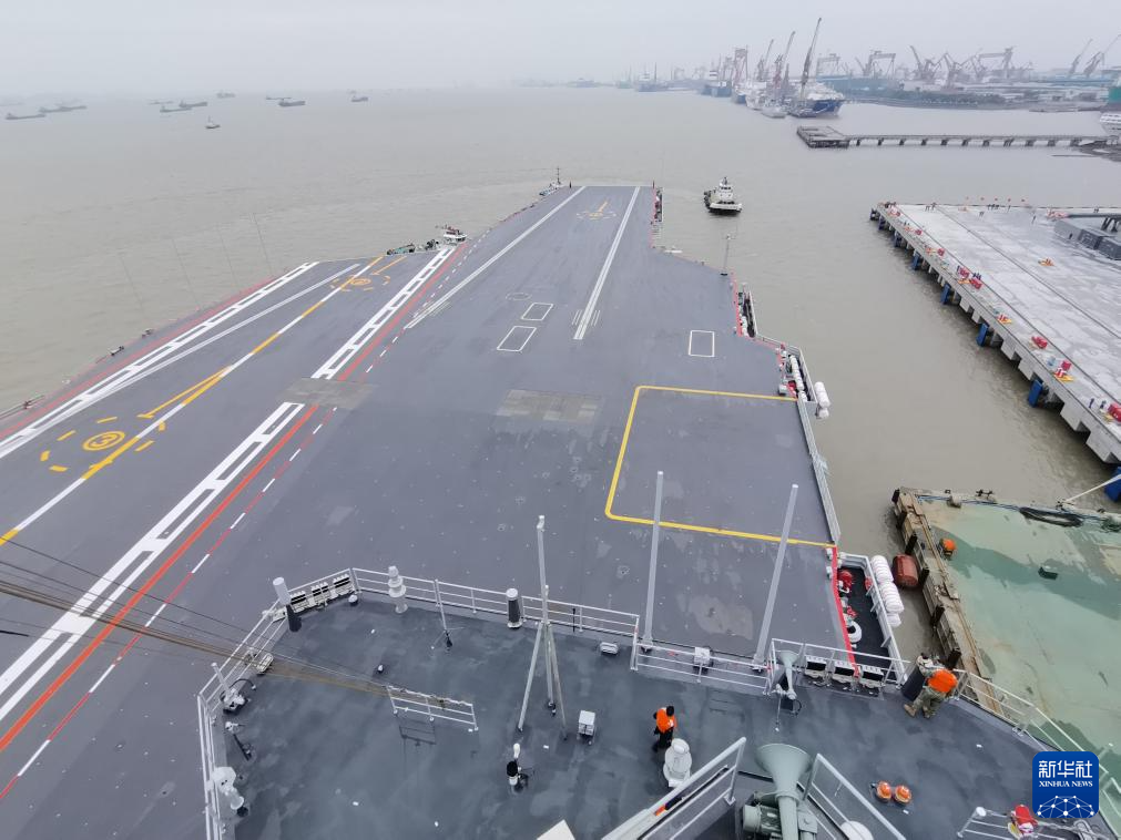 这是首航前靠泊在码头的福建舰(4月30日摄)。