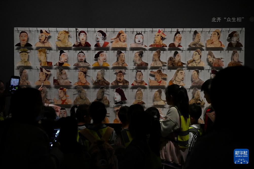 5月4日,游客在山西太原北齐壁画博物馆参观。