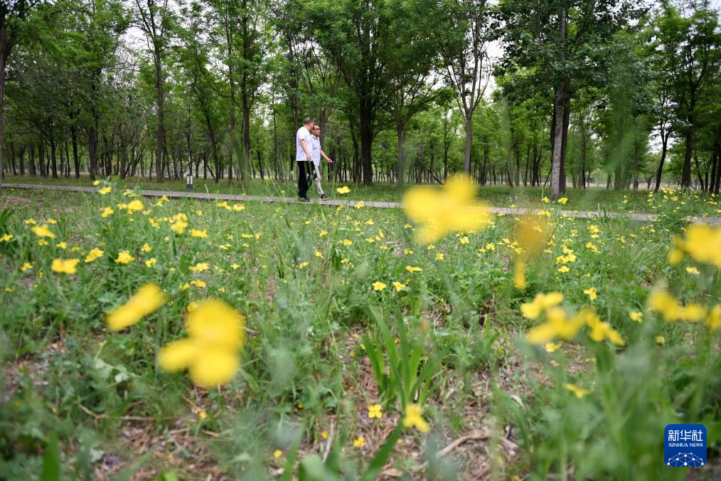 5月4日,游客在河北省石家庄市小壁林区内散步。