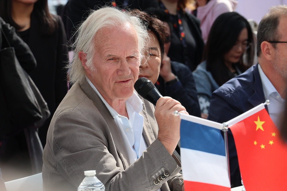 5月15日,法国著名导演、制片人菲利普·米尔在法国戛纳举行的中外电影合作交流会上发言。