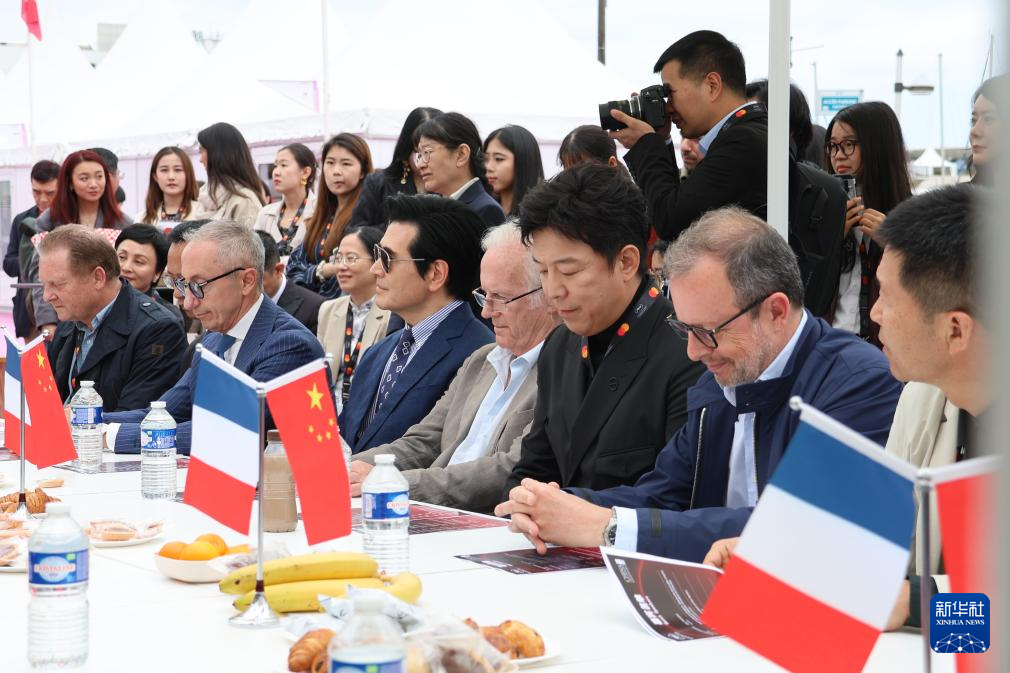 5月15日,中外电影人在法国戛纳参加中外电影合作交流会。