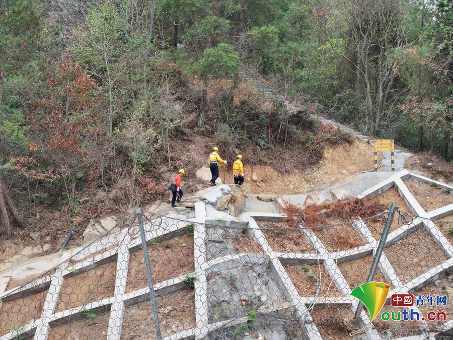 巡山队员正在检查被动防护网状态。敬凡 摄