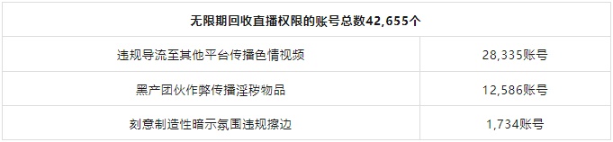 除上述账号外,nvs**938、215**080、ain**311、535**542等28,335个账号均被处置为无限期回收直播权限。