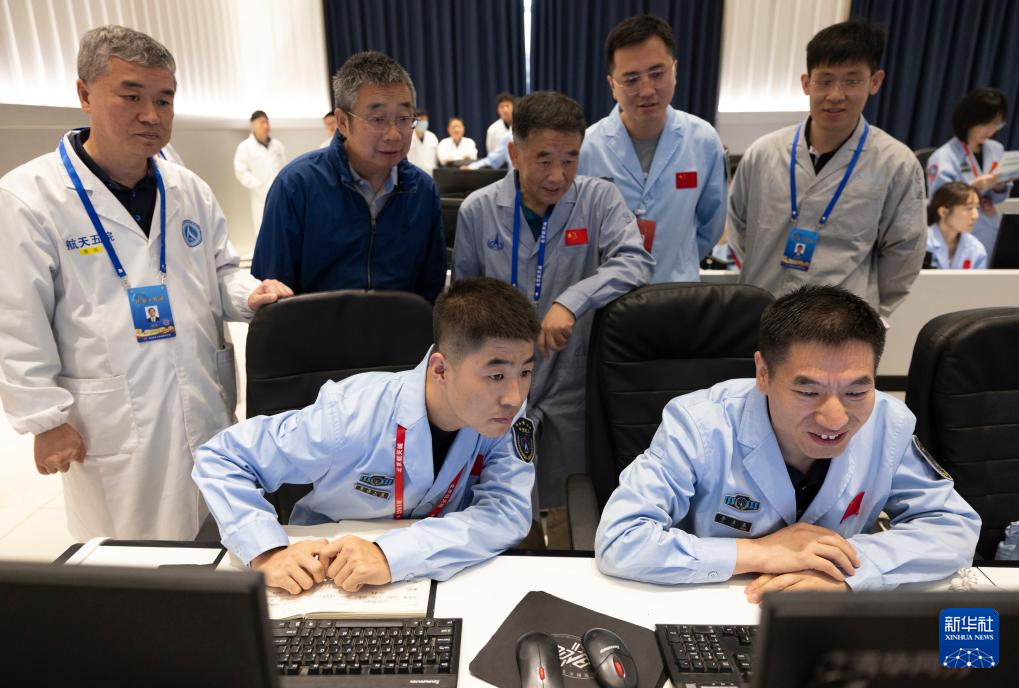 6月2日,北京航天飞行控制中心工作人员在查看嫦娥六号着陆器和上升器组合体传回的数据。