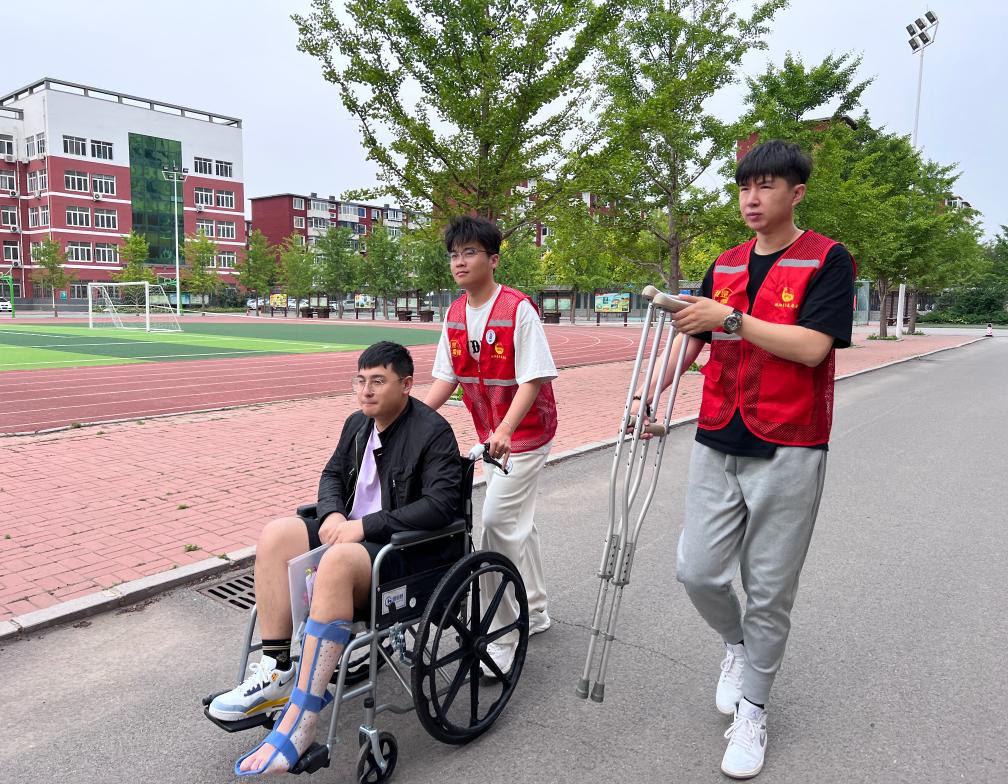 “我脚受伤了,行走不方便,你们能推我进考场吗?”“没问题!我们会全程陪你进出考场。”沈阳市第五十三中学考点门口,当看到一位考生坐着轮椅行动不便时,志愿者们迅速承担起了接送任务。