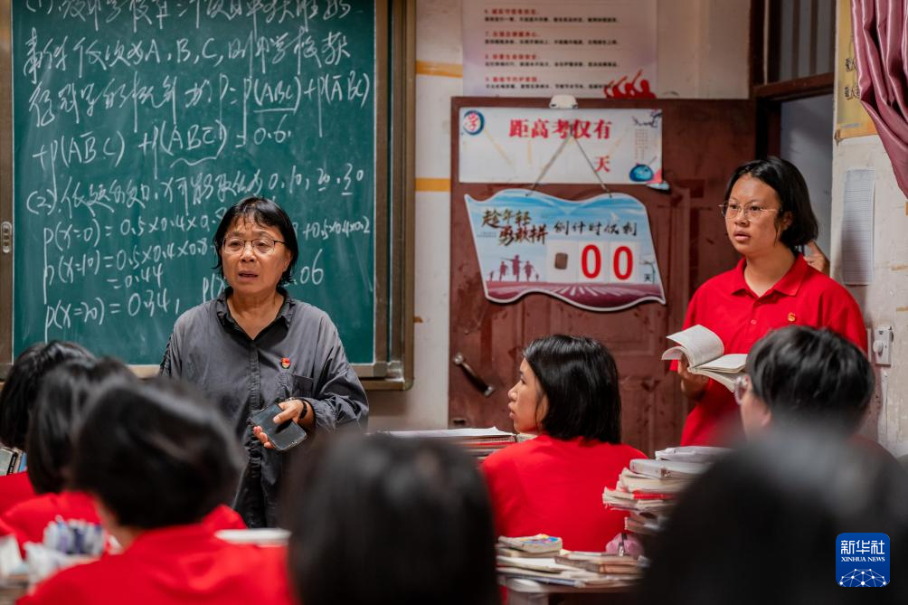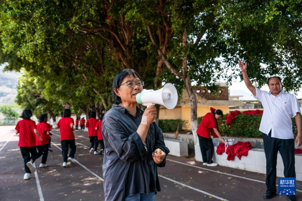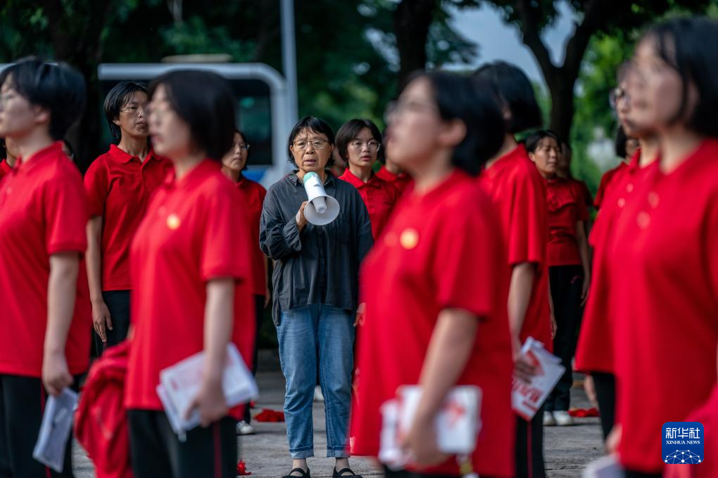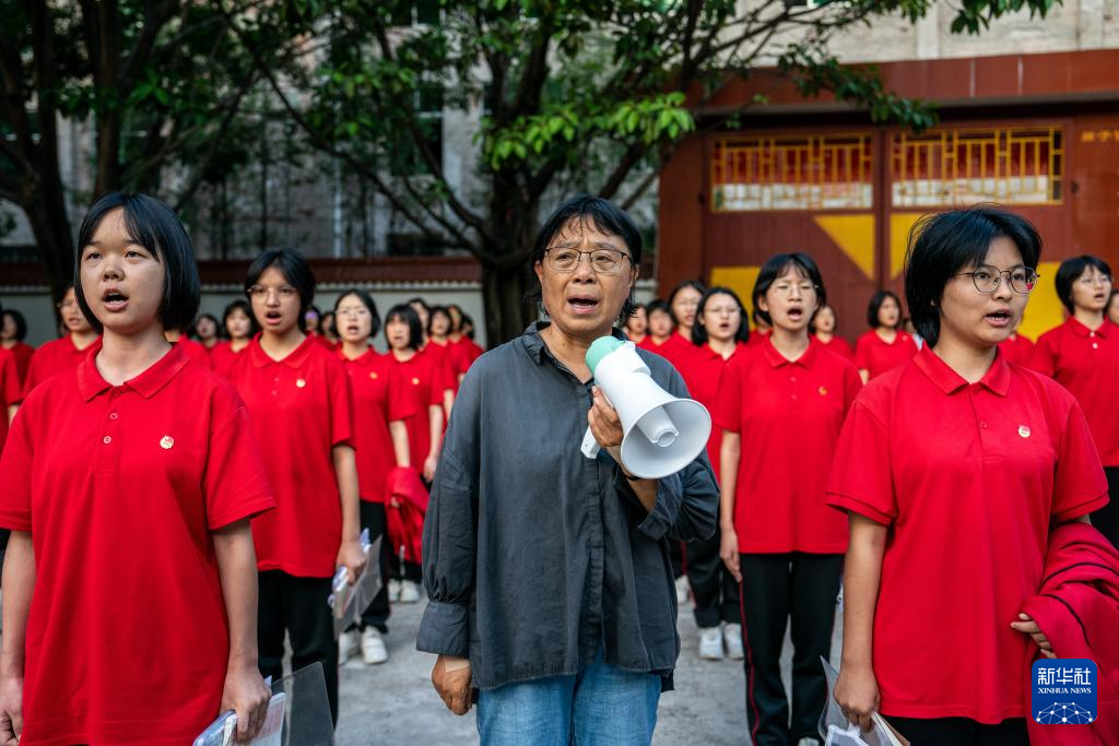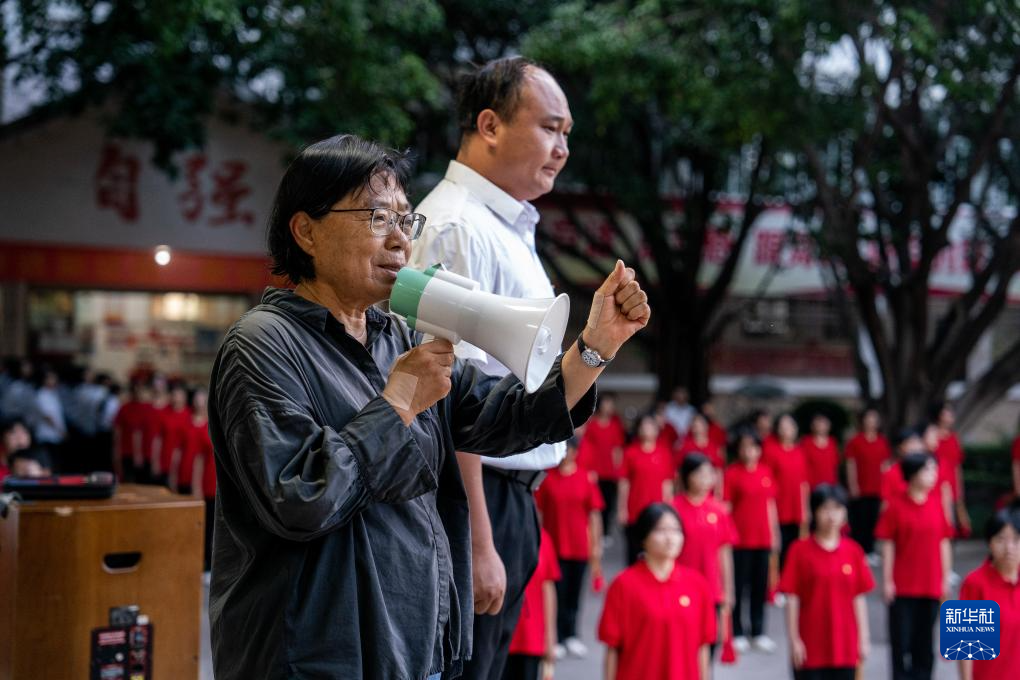 6月7日,张桂梅带领学生齐唱歌曲《万疆》,为高三学生送考。