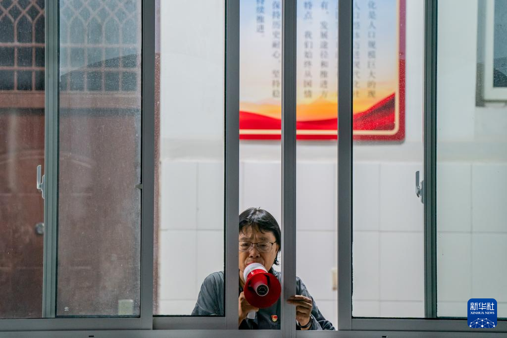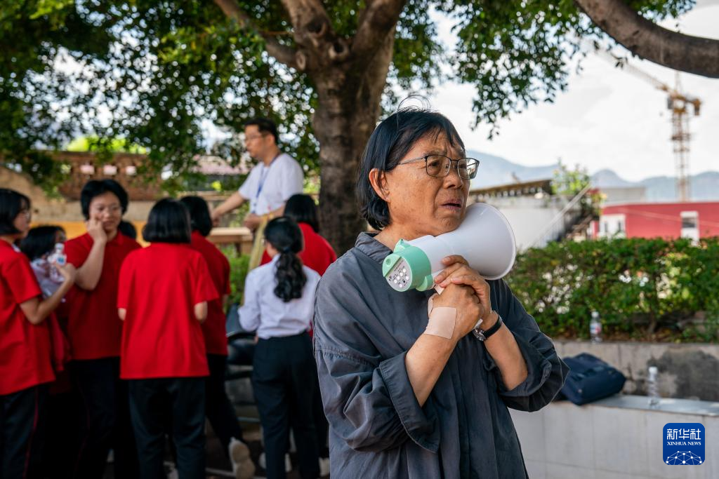 6月7日,张桂梅拿着“小喇叭”叮嘱将要奔赴考场的考生带好考试用品。