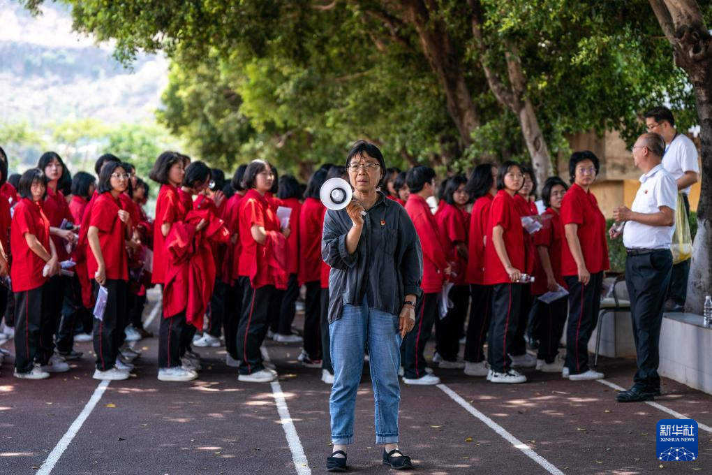 6月7日是2024年高考第一天,云南丽江华坪女高校长张桂梅又是一大早提前来到教学楼,拿着“小喇叭”一遍一遍叮嘱将要奔赴考场的高三学生带好考试用品,并组织低年级学生为参加高考的同学们加油鼓劲。自云南丽江华坪女子高中的学生2011年首次参加高考以来,张桂梅校长已连续送考14年。