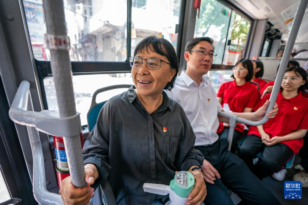 6月7日,张桂梅与学生在返校的车辆上一起唱歌。
