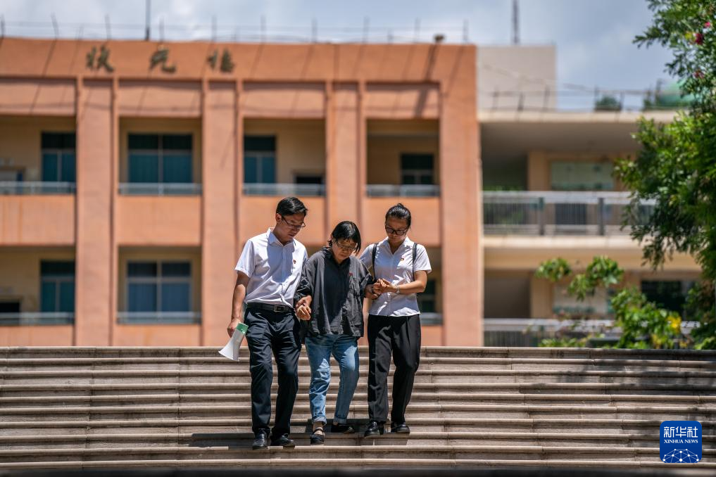 6月7日,张桂梅在同事的搀扶下离开考点。