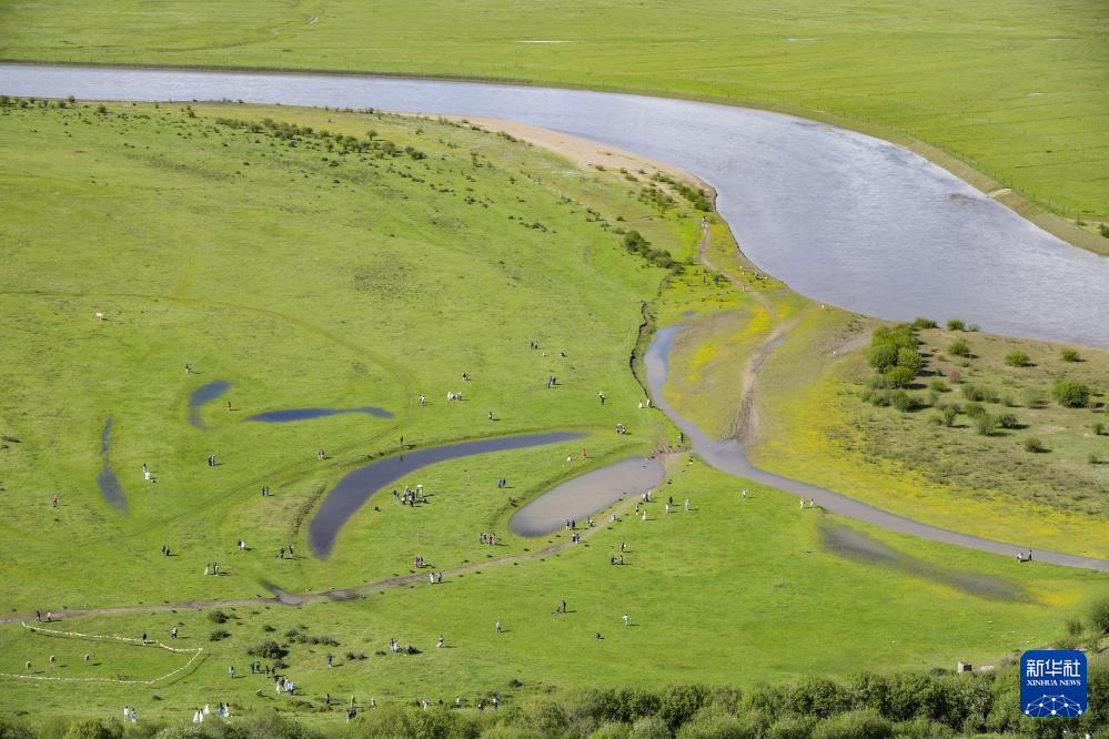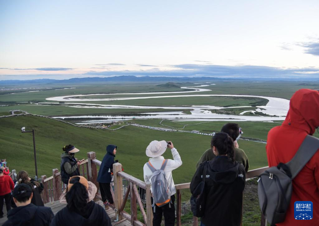 6月8日,游客在四川省阿坝藏族羌族自治州红原县月亮湾景区观光。