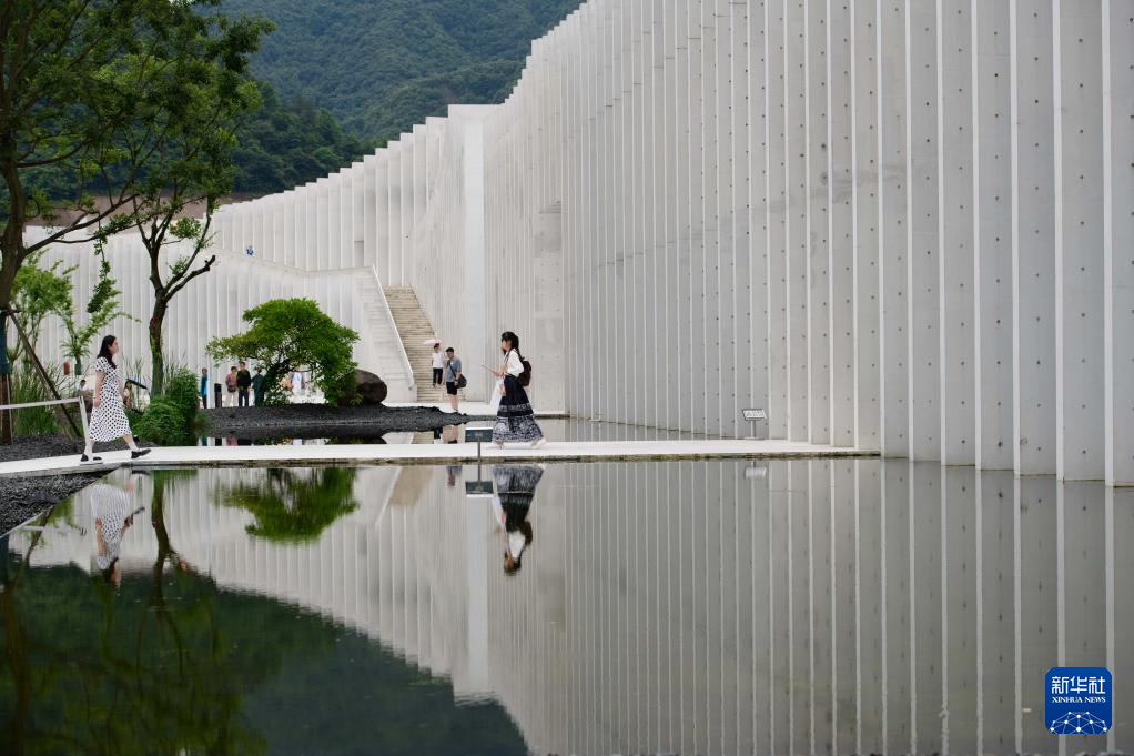6月9日,游客在位于安徽省宣城市泾县的中国宣纸文化园内参观。
