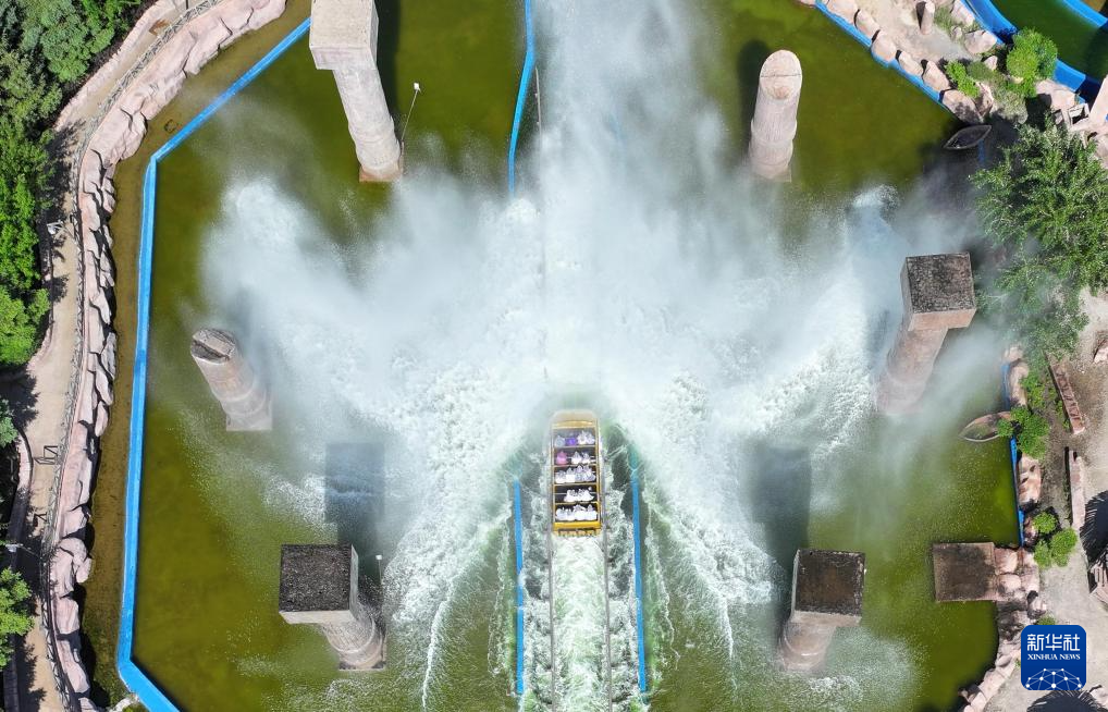 6月9日,游人在沈阳方特欢乐世界游玩(无人机照片)。