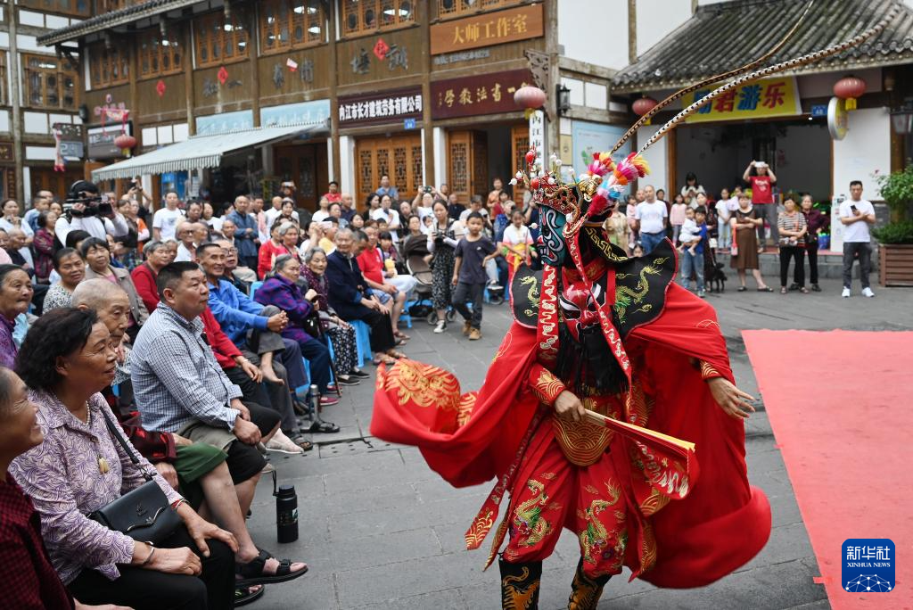 6月9日,人们在四川省内江市东兴区东兴老街欣赏川剧变脸。
