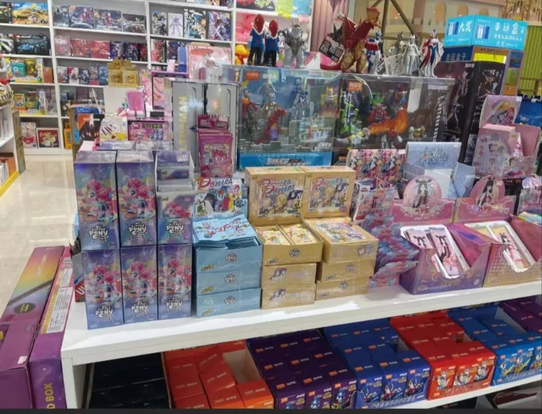 几十年前火过一段时间的卡牌再次“翻红”,市场也快速嗅到商机。记者走访发现,多数商家已经将卡牌类商品放到了进门最显眼的货架上,有的还专门开辟了卡牌货架,摆满了各种热门动漫IP的卡牌及衍生产品。