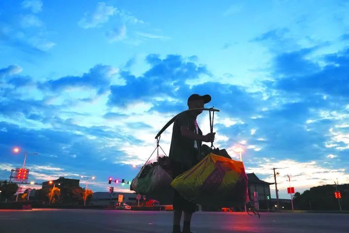 满满当当的扁担和菜筐,装的是菜农家门前新鲜的蔬菜,装的也是普通合肥人的一日三餐。不仅包含了认真对待生活的热情,也盛得下对美好生活的向往和期待。
