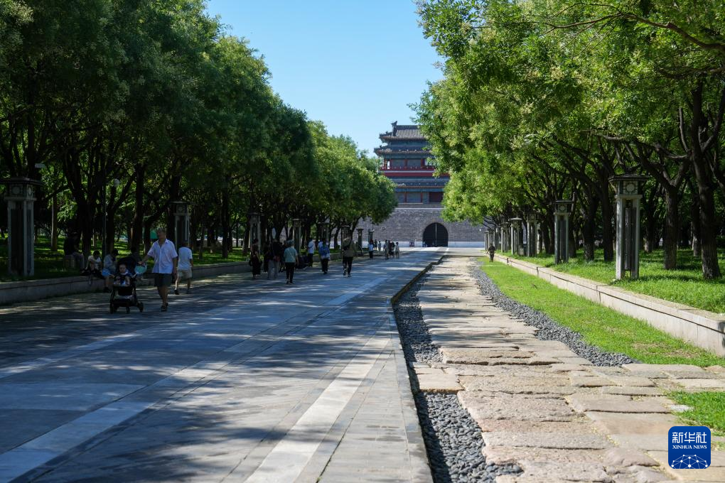 这是7月18日在北京永定门公园拍摄的中轴线南段道路遗存。