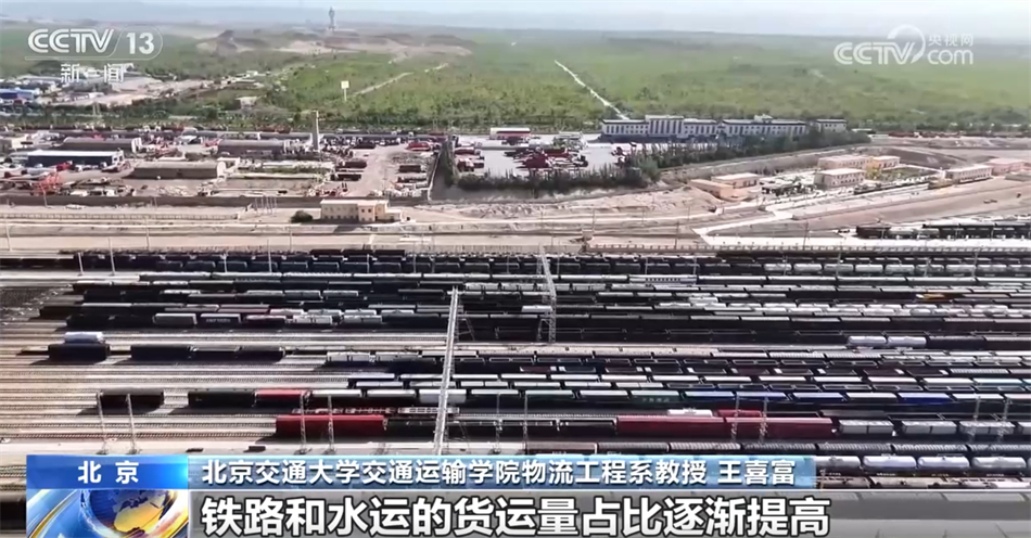 北京交通大学交通运输学院物流工程系教授王喜富称:“铁路和水运的货运量占比逐渐提高,今年上半年,与2023年各种运输方式的货运量占比上看,水路货运量占比提高了0.8个百分点,铁路运输占比与2023年相比提升了0.3个百分点,这就表明我们运输结构的降本效果相对显著。”