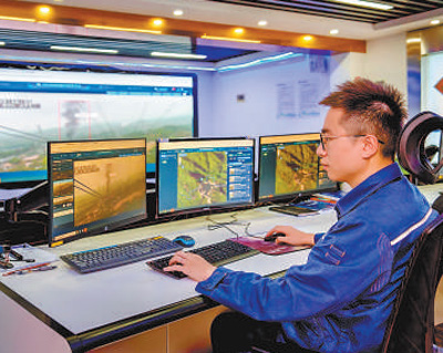 深圳供电局工作人员运用远程监控系统,查看线路运行情况。