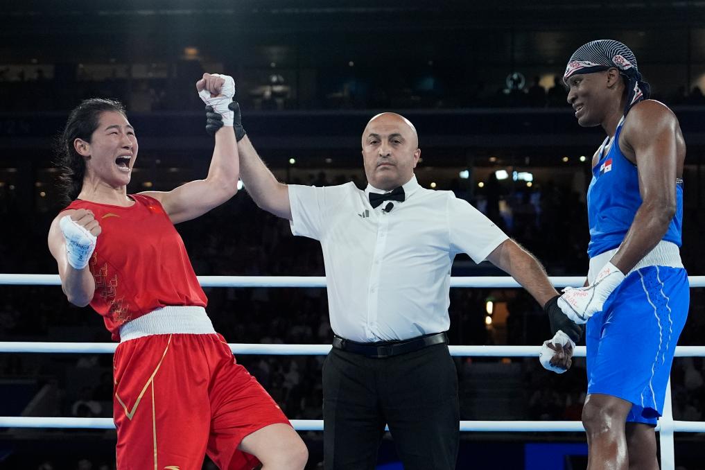 8月10日,裁判宣布李倩(左)获胜。新华社发(POOL照片/约翰·洛克)