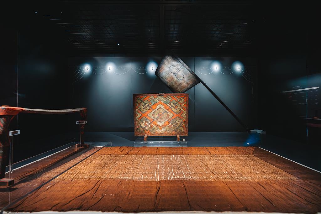 △ 湖南博物院复原展示辛追夫人家的“客厅”,最左面就是云纹漆凭几。