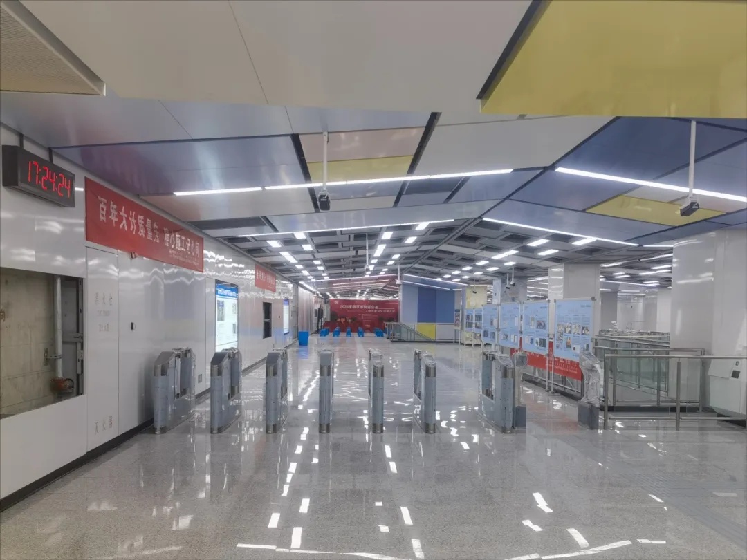 续建3号线三期。截至2024年9月,车站已完成所有围护结构和主体结构。明挖区间完成主体结构,4条盾构隧道全部始发并贯通。部分区段开展轨道铺设施工及车站安装工程施工。