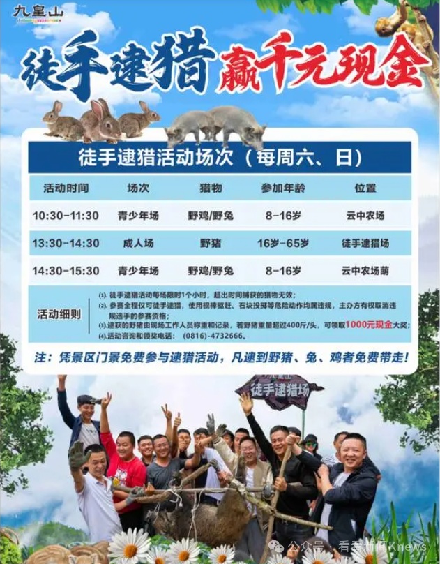近日,四川绵阳市北川羌族自治县九皇山景区“徒手逮猎”旅游项目在网络上受关注,游客在景区猎场徒手抓“野猪”“野兔”“山鸡”,抓到还可以带走。不少网友都表示想去打卡体验一番,但走红的同时,旅游项目的资质和安全性也引发了质疑。