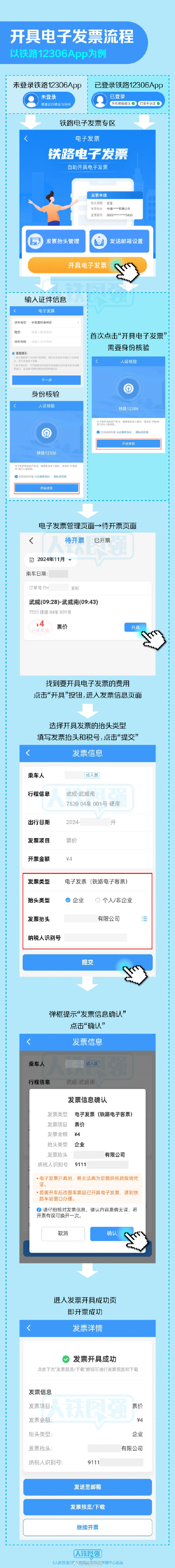 今日起,全国铁路推广全面数字化的客运电子发票服务。
