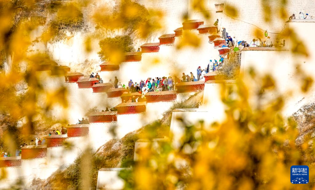 10月31日拍摄的布达拉宫年度外墙粉刷工作现场。