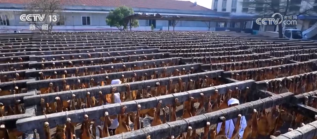 而在浙江金华,每年从立冬到立春,腌制工艺有着上千年历史的金华火腿,进入最忙碌的腌制时节。温度适宜,数百万只火腿开始上盐,接下来的一个月,需要上5到6次盐;再清洗、晾晒、发酵,前后8道工艺、48道工序,历经四季轮回,最终成就美味,呈现绛红的色泽和独特的鲜香。