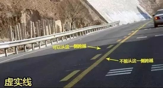 在某些路段会出现白色或黄色的虚实线,虚线侧允许车辆临时跨越,实线侧禁止车辆跨越。